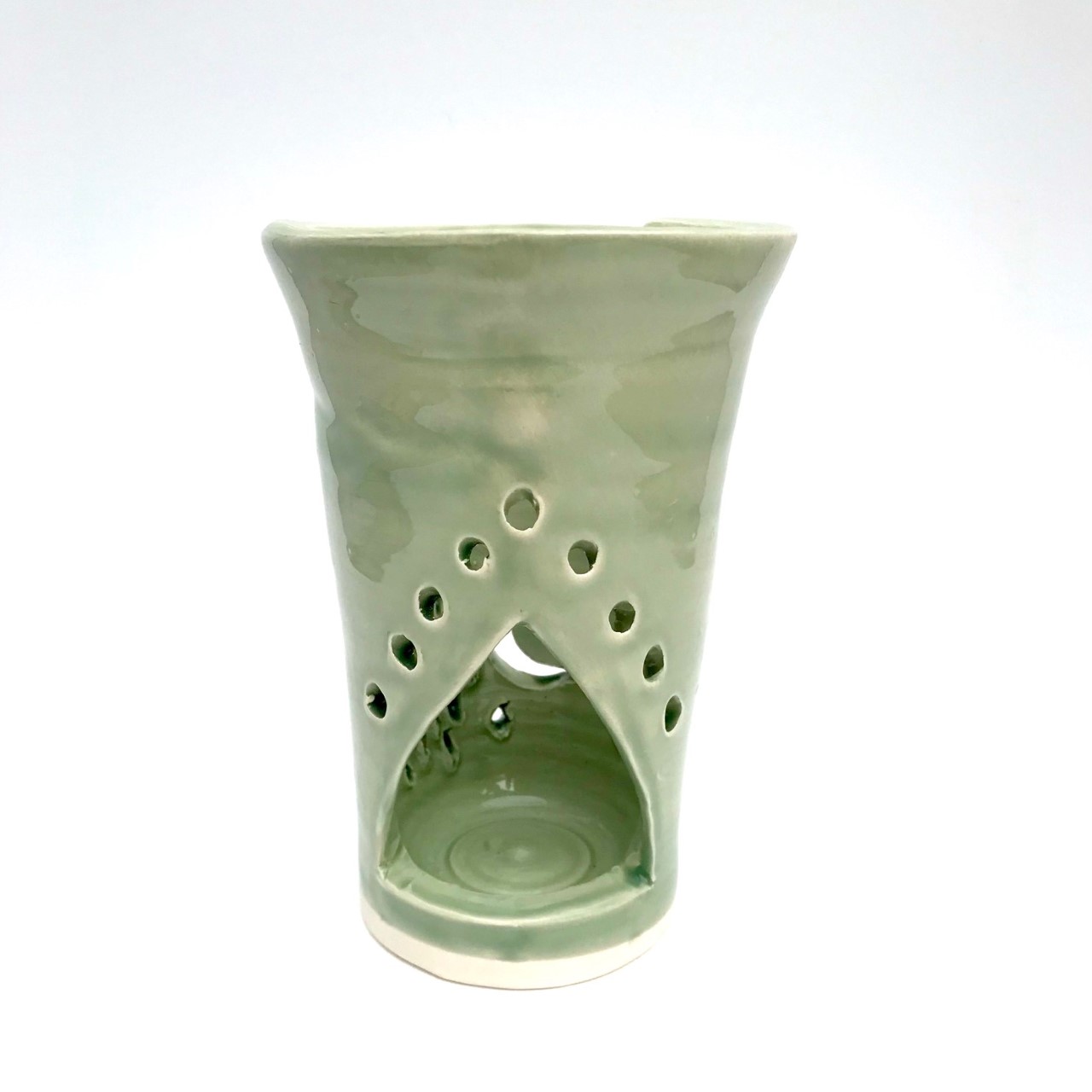 Ce photophore a été façonné par mes soins sur un tour puis décoré minutieusement à la main.