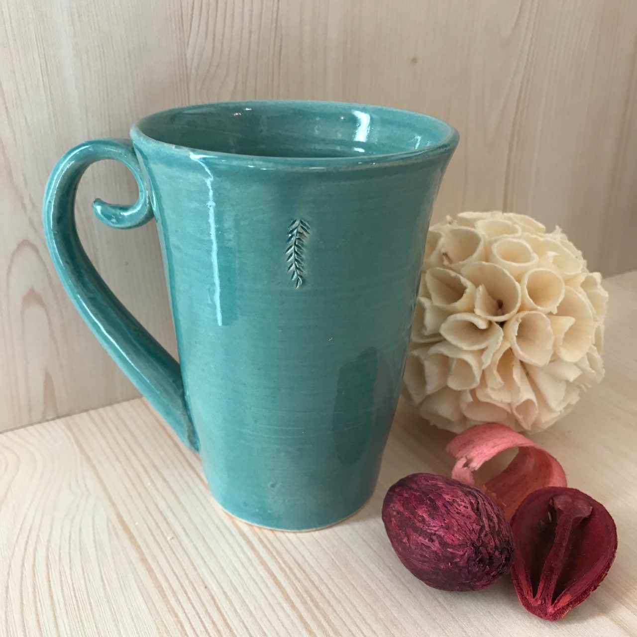C’est sans doute pour toutes ces raisons que j’ai eu envie de créer une multitudes d’objets divers ornés de plumes. Je vous présente ici un mug en céramique émaillé bleu amazonie.