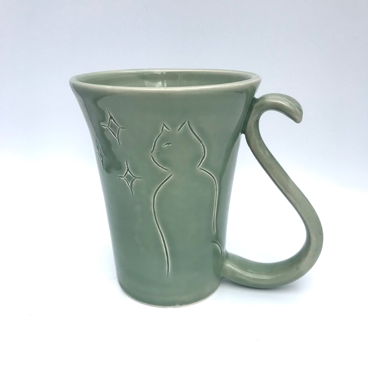 mug céladon en faïence réalisé à la main vous offrira des instants de bien-être, tout en vous reliant à votre amour pour les chats.