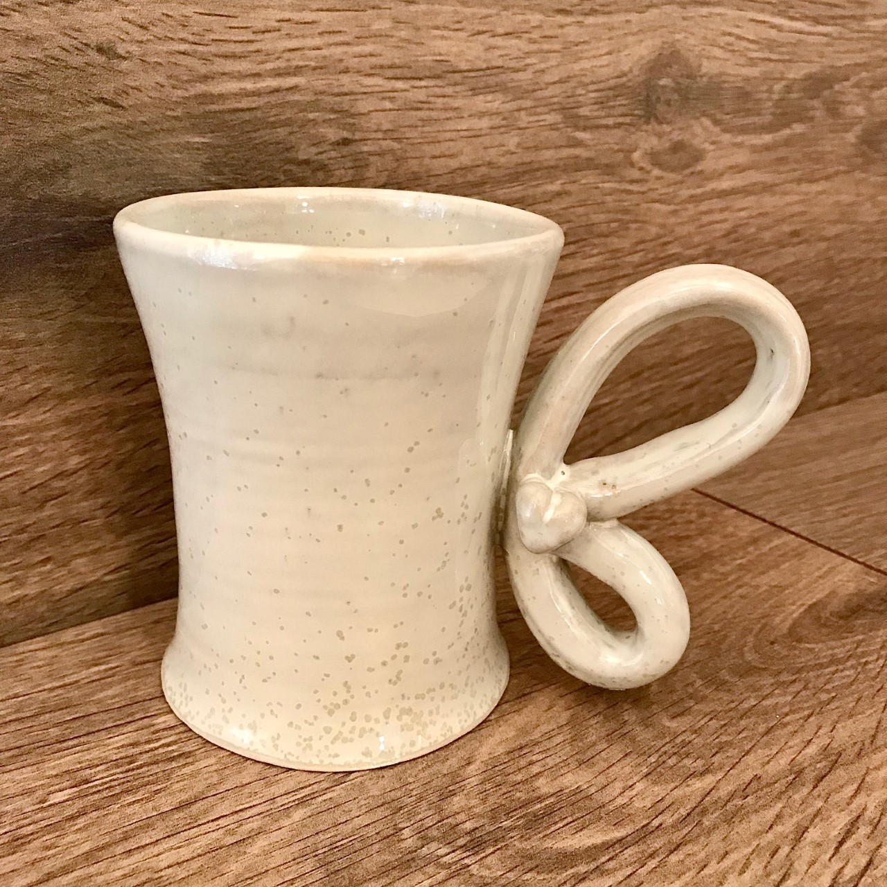 Je vous propose ici un mug en grès émaillée couleur crème, paré d’une anse originale accueillant en son sein un coeur.