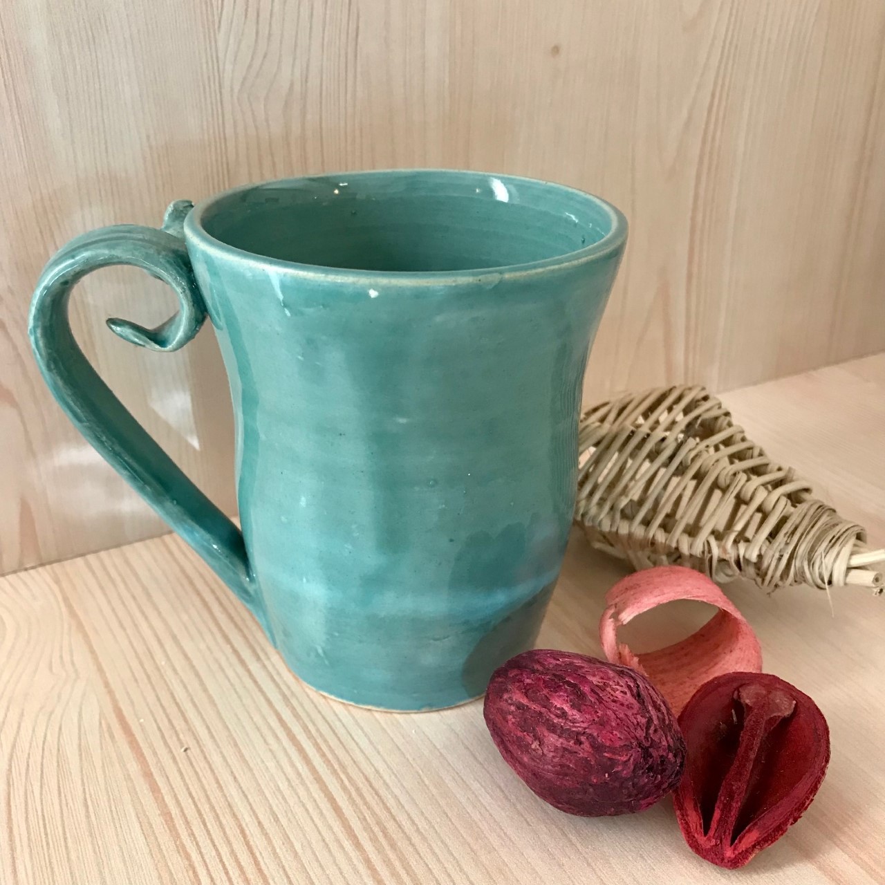 Il a été façonné par mes soins sur un tour puis délicatement décoré à la main.