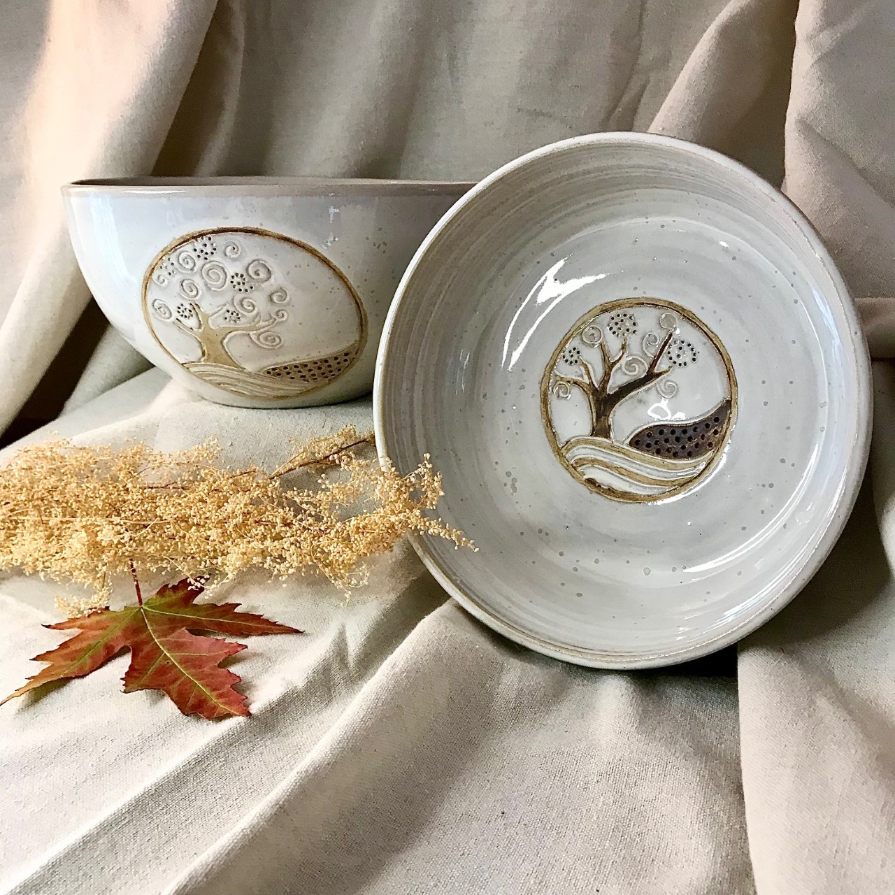 Petit saladier « L’arbre enchanté » en grès émaillé fait à la main.